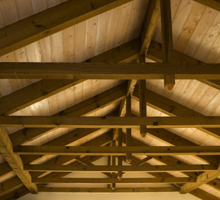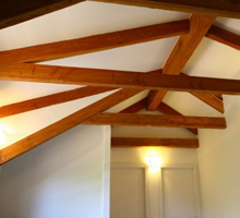 בחירת חומרים לביצוע המשימה - חומרים כגון: קורות הגג, סוג העץ והחתך, חיפוי הקורות ע"י לוחות גלריה או גבס למראה כפרי או נקי.