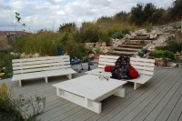 פינת ישיבה הכוללת שולחן ושני ספסלים גדולים. מעץ אורן פיני מוקצע מחוטא.